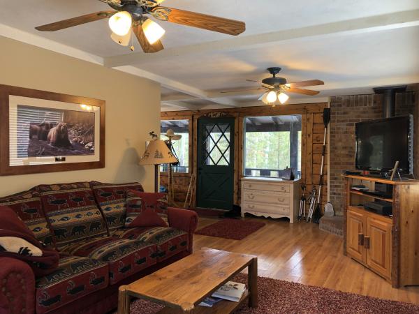 This adorable 2bd/1bath D log cabin on a very slighly sloping lot with easy access in Columbine Lake. Awesome views of Never Summer Mountain Range and all the amenities of Columbine. A cozy gas fireplace in the living room , wood flooring in the kitchen, dining and living areas, beautiful deck to sit and watch all the wildlife so abundant in the area. Enjoy the indoor pool, sauna, hot tub, fishing on the well stocked lake along with canoeing, kayaking and close to hiking, biking, atv and snowmobiling trails for your outdoor adventures.